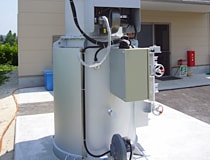 ガス化室の温度調整をする水噴霧装置。過剰な温度上昇を抑えることにより、思いがけない黒煙の発生などを未然に防止します。