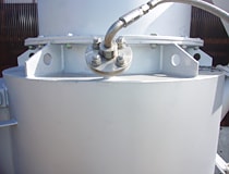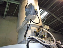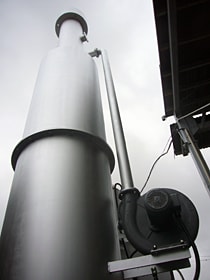 DE780SDのサイクロン部分。燃焼中並びに灰だし作業時に煤塵の発生を大幅に抑制する。鉄鋼+耐火材ライニングの仕様で耐久性抜群。