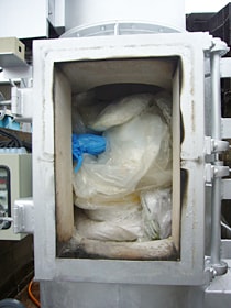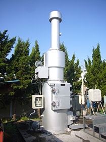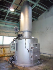 燃焼室(排ガス処理室)。燃焼空気を効率的に送り込みながら助燃バーナーで温度管理。処理の安定性は抜群。