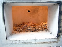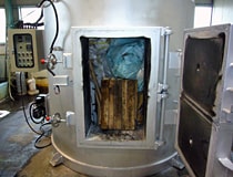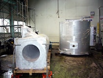 納入時の写真。写真手前に燃焼室の断面を見ることが出来る。分厚くライニングされた耐火物。